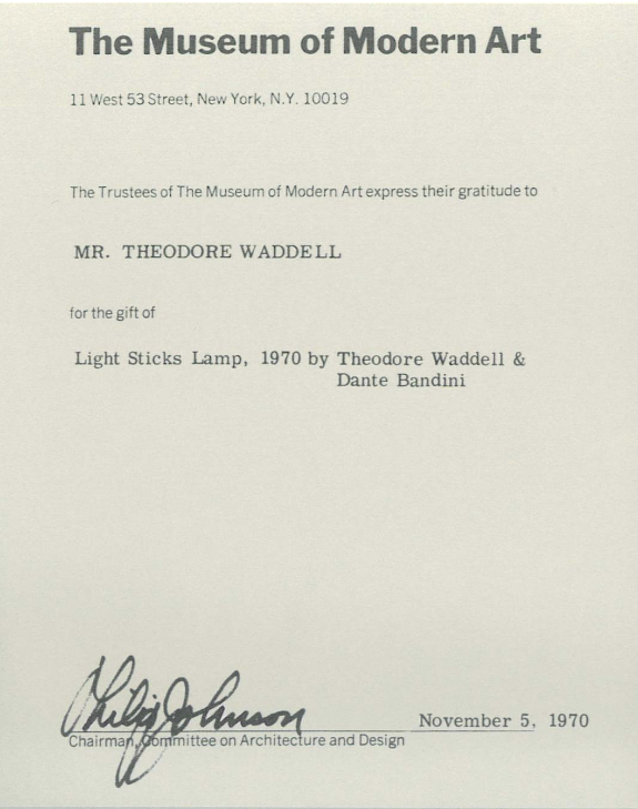 A recognized icon of experimental design, this lamp entered the permanent collection of the MoMA in New York as early as 1970 and has been exhibited in the Louvre and the Centre de Création Industrielle.